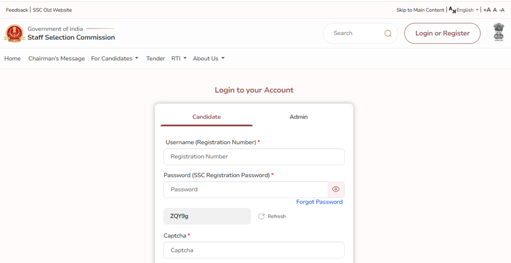 - यदि आपने पहले किसी SSC exam के लिए रजिस्ट्रेशन किया है, तो अपना Registration ID, Password और Captcha भरकर डायरेक्ट लॉगिन कर सकते हैं।
